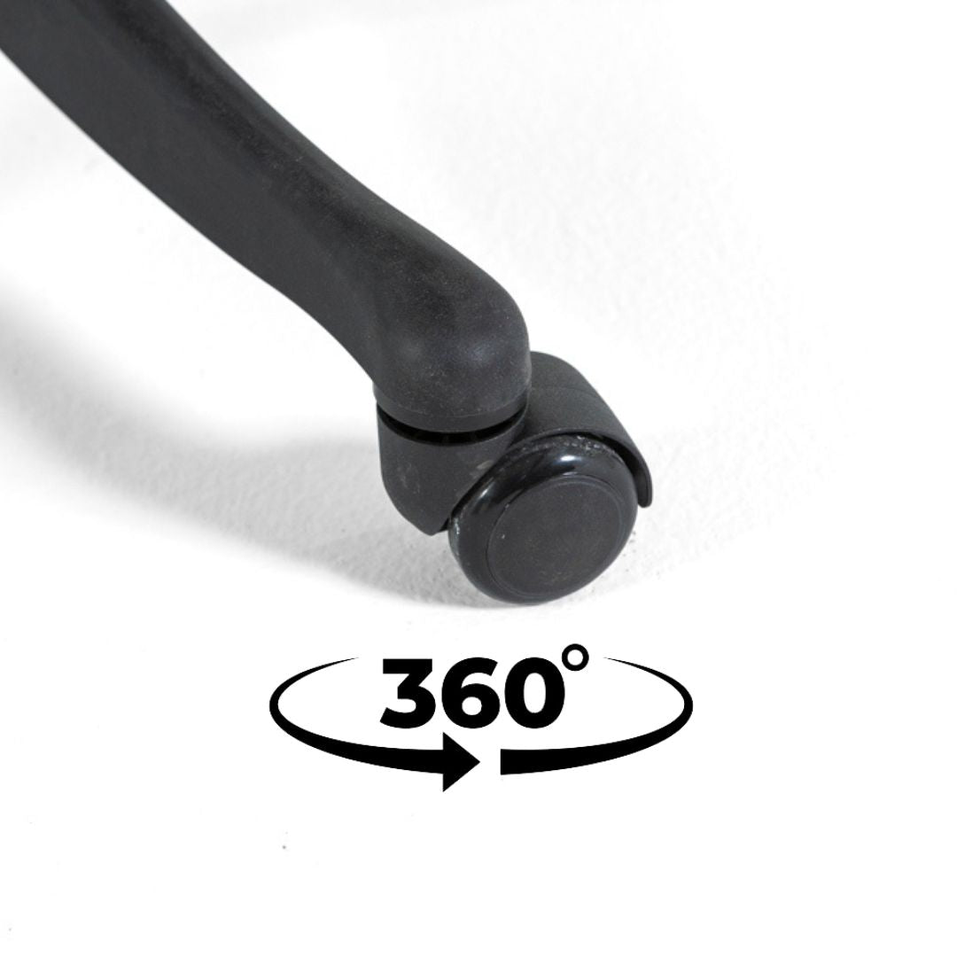 Il rivestimento in rete traspirante assicura un'ottima ventilazione, evitando l’accumulo di calore, mentre il sedile imbottito garantisce il giusto equilibrio tra morbidezza e sostegno. La funzione oscillante dello schienale è regolabile, permettendo di rilassarsi durante le pause. Il tutto è completato da una base robusta con ruote scorrevoli che facilitano lo spostamento senza sforzo.