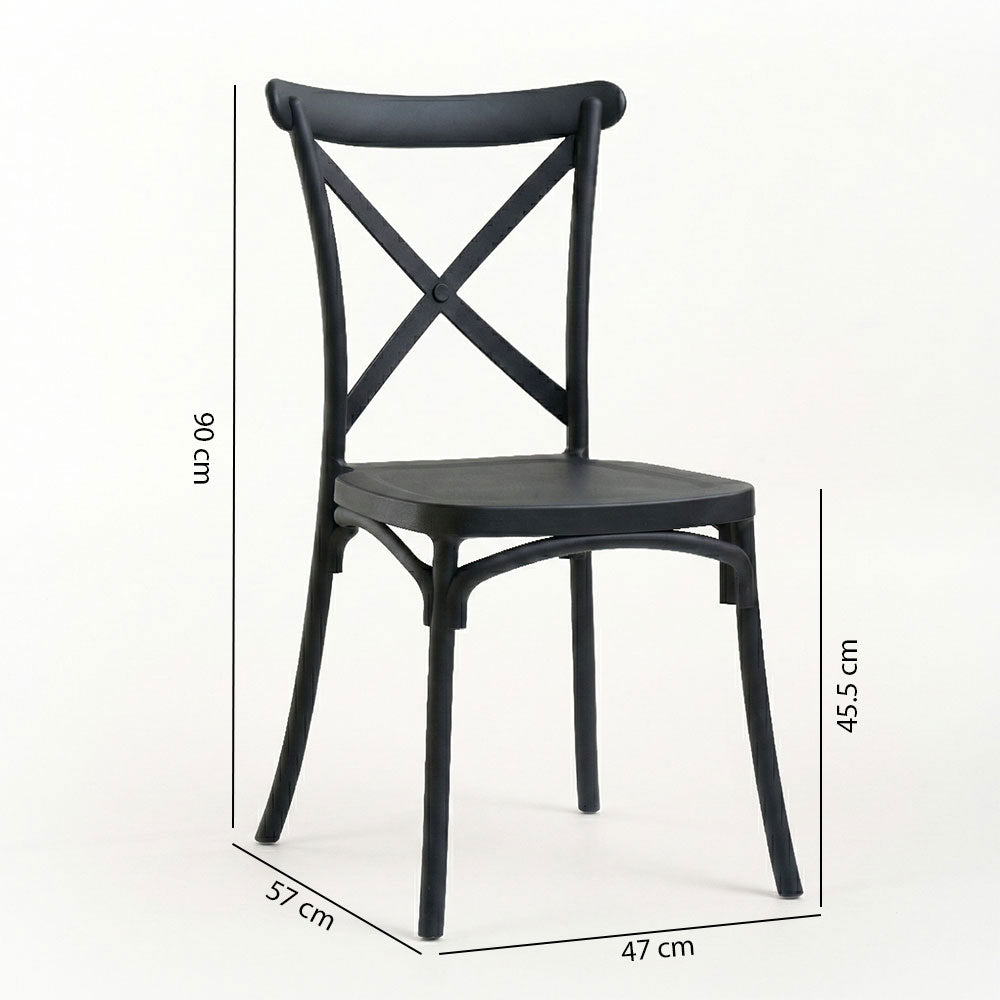 Il design classico ed elegante, caratterizzato dallo schienale con incrocio, permette di valorizzare con stile la cucina o la sala da pranzo, adattandosi con naturalezza anche a terrazze, verande e spazi all’aperto.